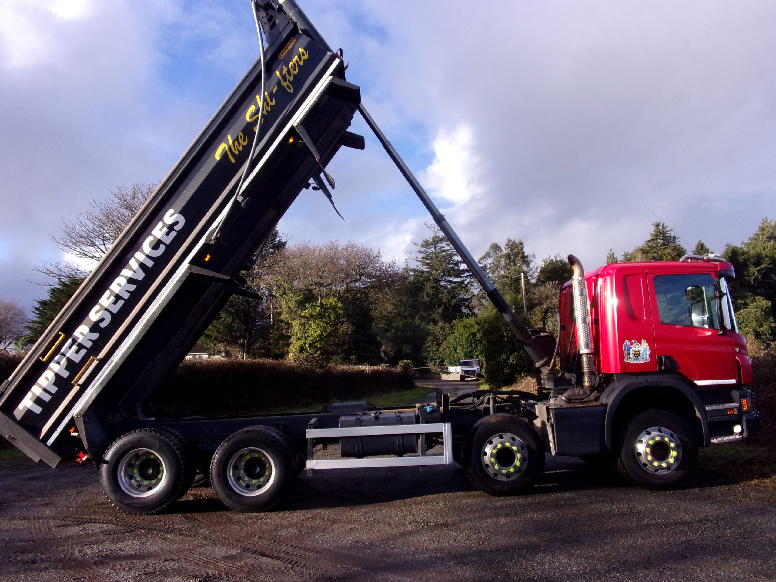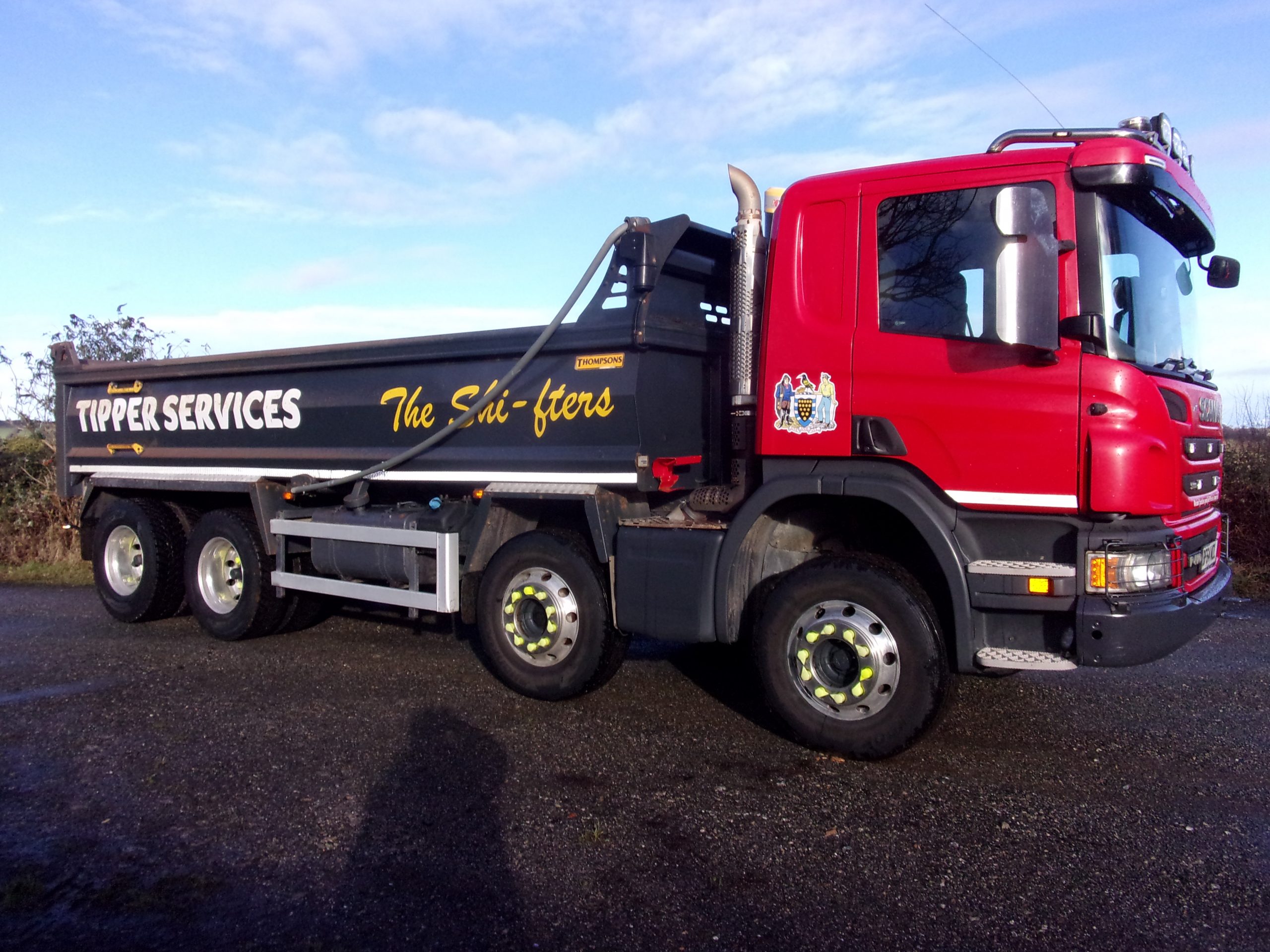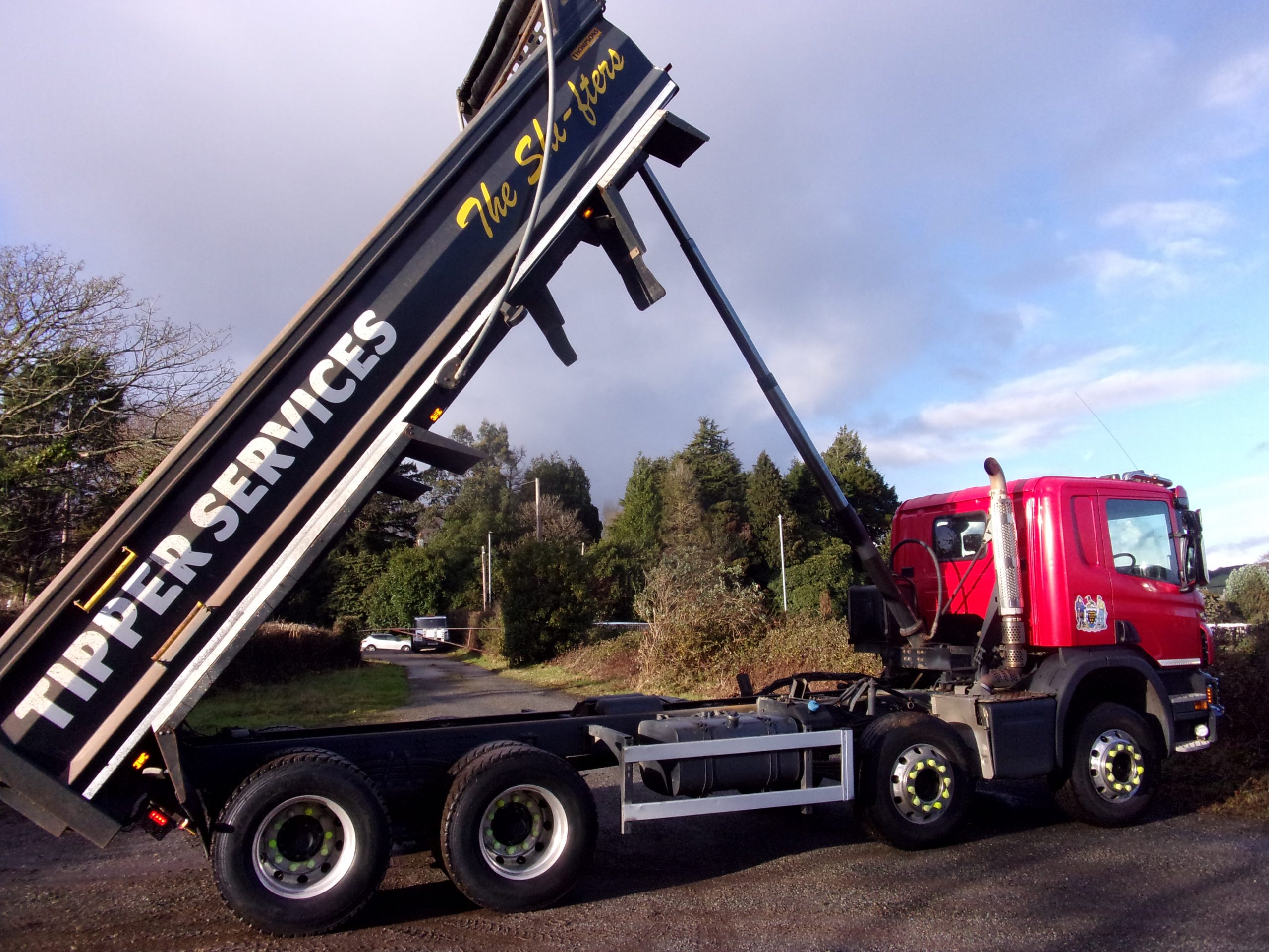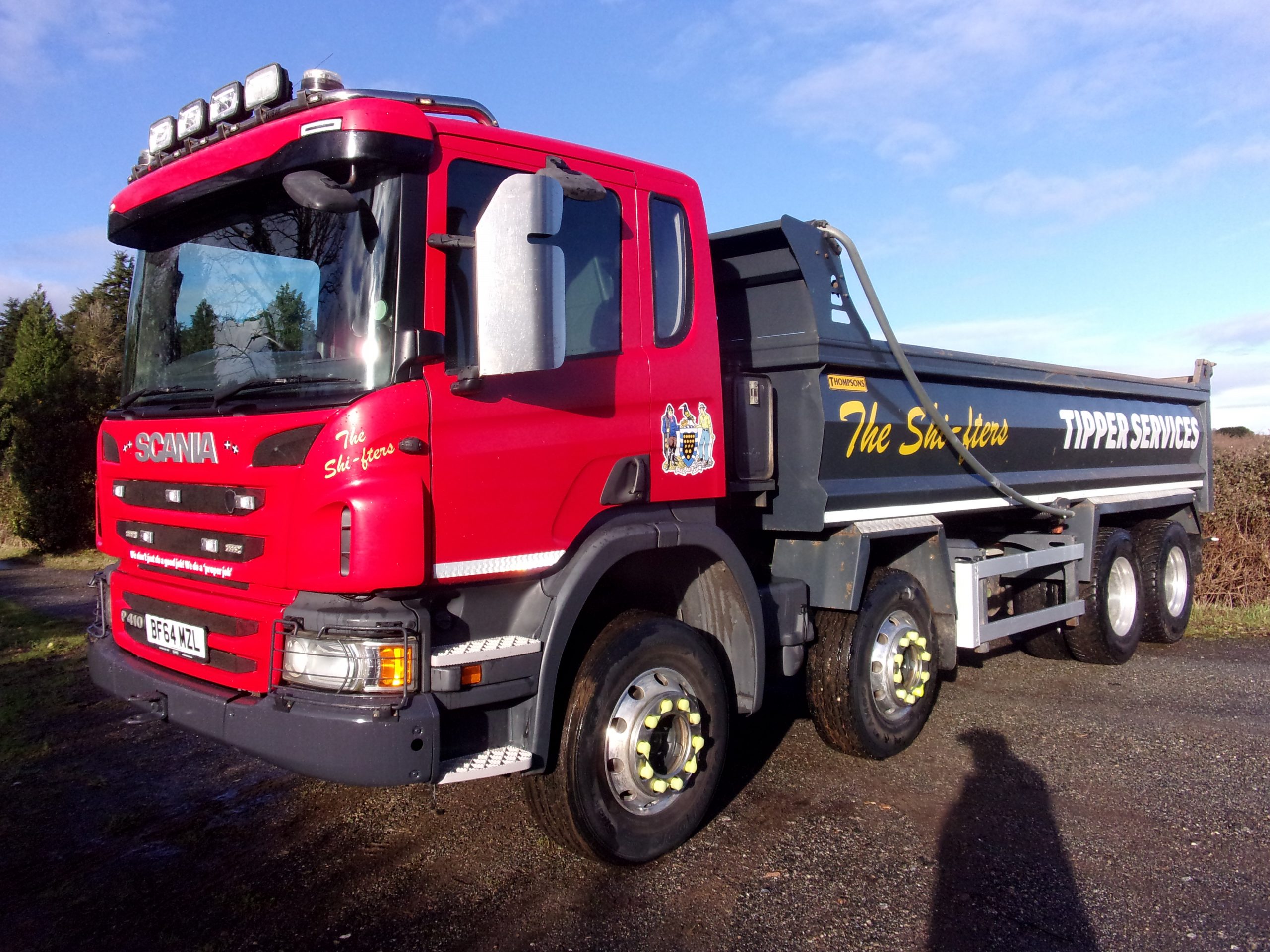 Scania P410 Day Cab 8×4 steel body 32 tonne tipper, 9 speed manual gearbox, onboard weigher, front-to-back sheet, air operated tailboard, alloy wheels, reverse camera, 388,016 miles, very clean.